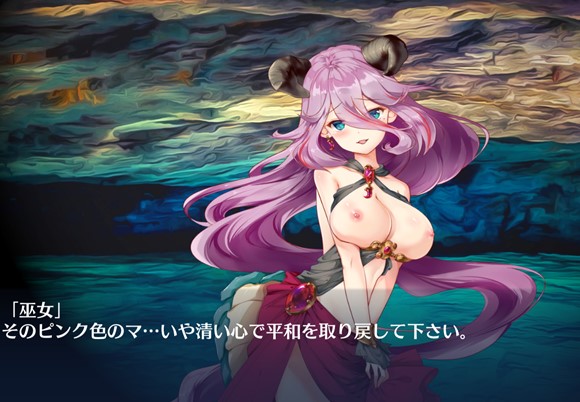 が、それまでの空気をぶっ壊すように乳房丸出しの巫女さんが現れ、性交渉で邪竜を浄化するように告げてくる。