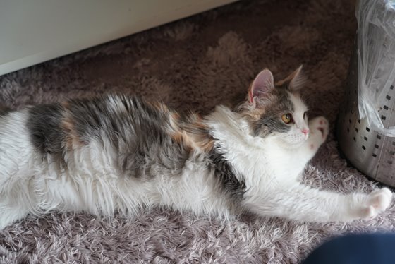 まだ生後5ヶ月なんだけど、なかなかデカイです、もっとデカくなります、長毛種なのでもっとフサフサになるそうで。